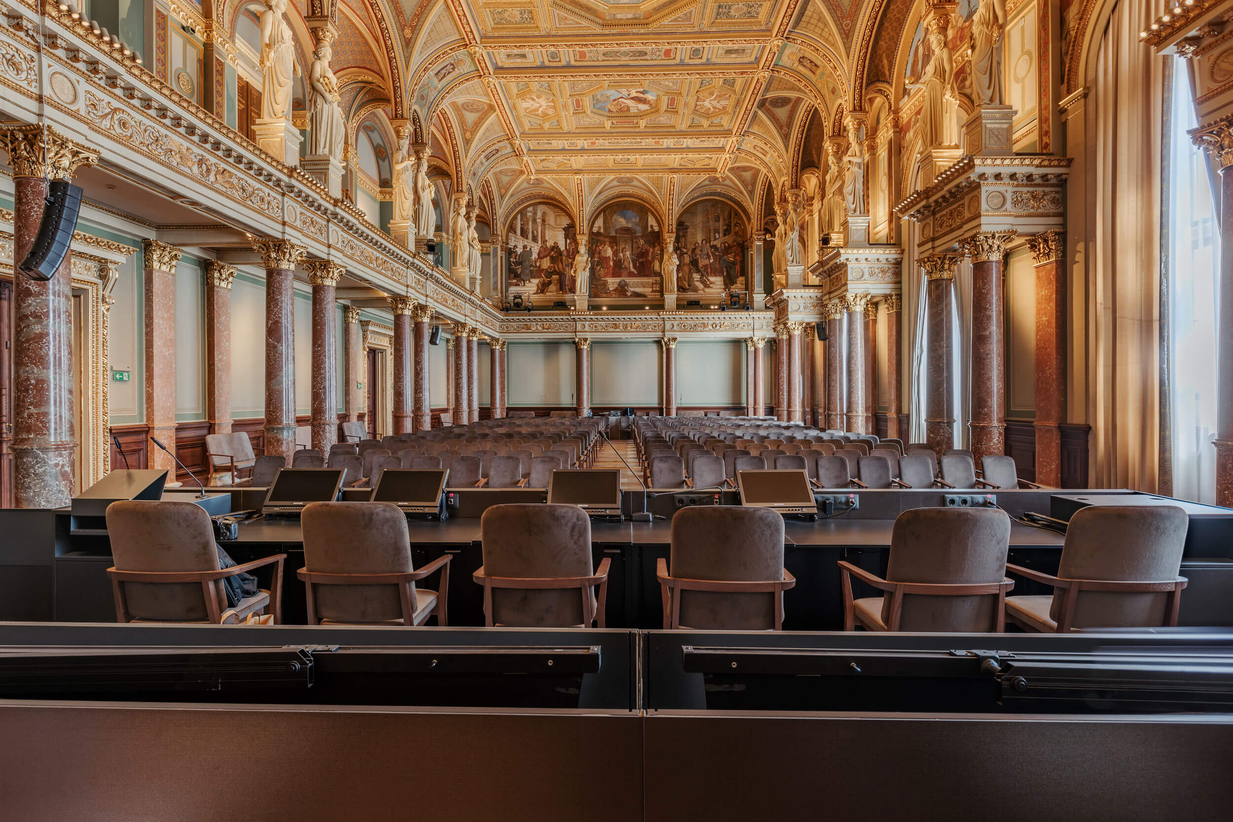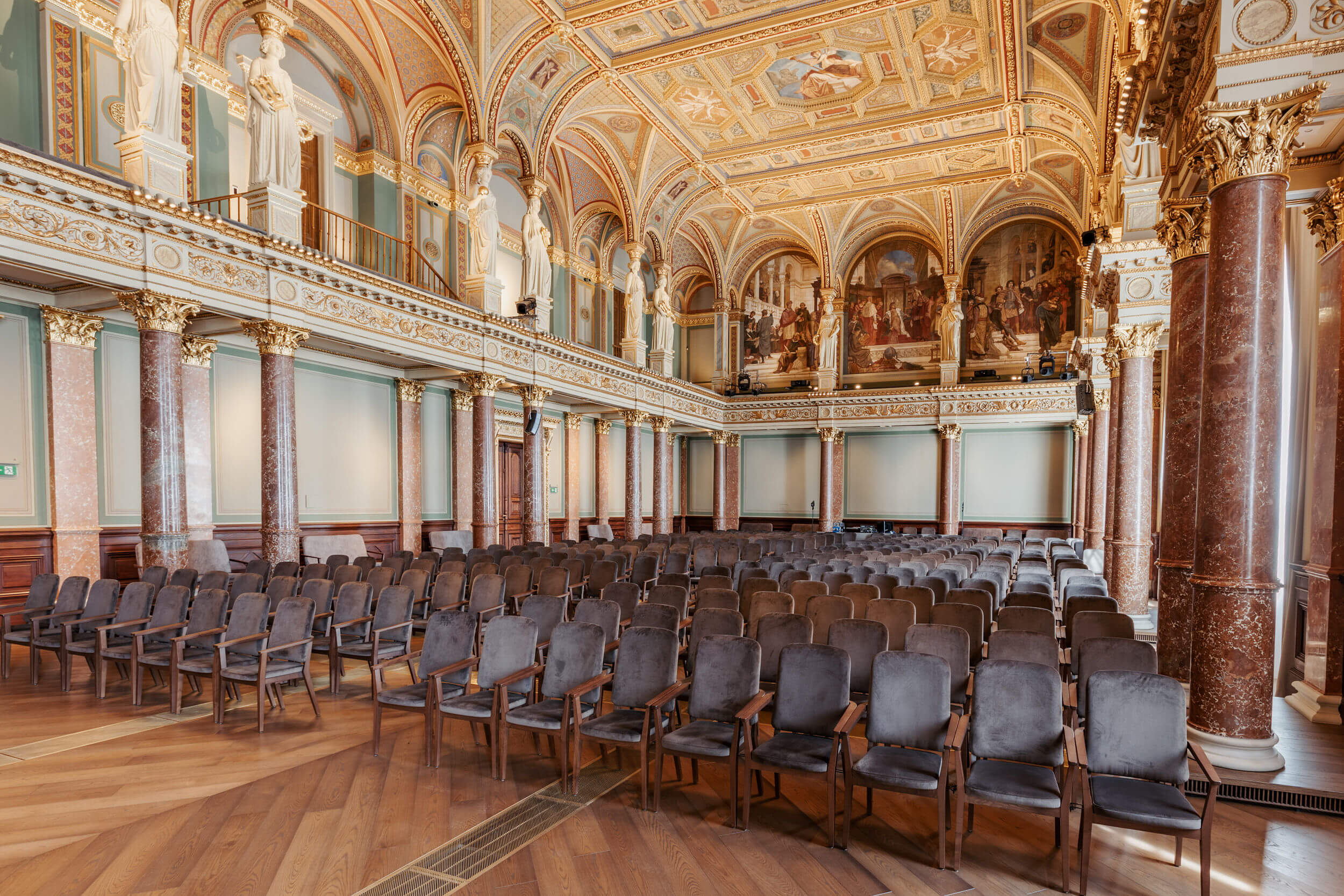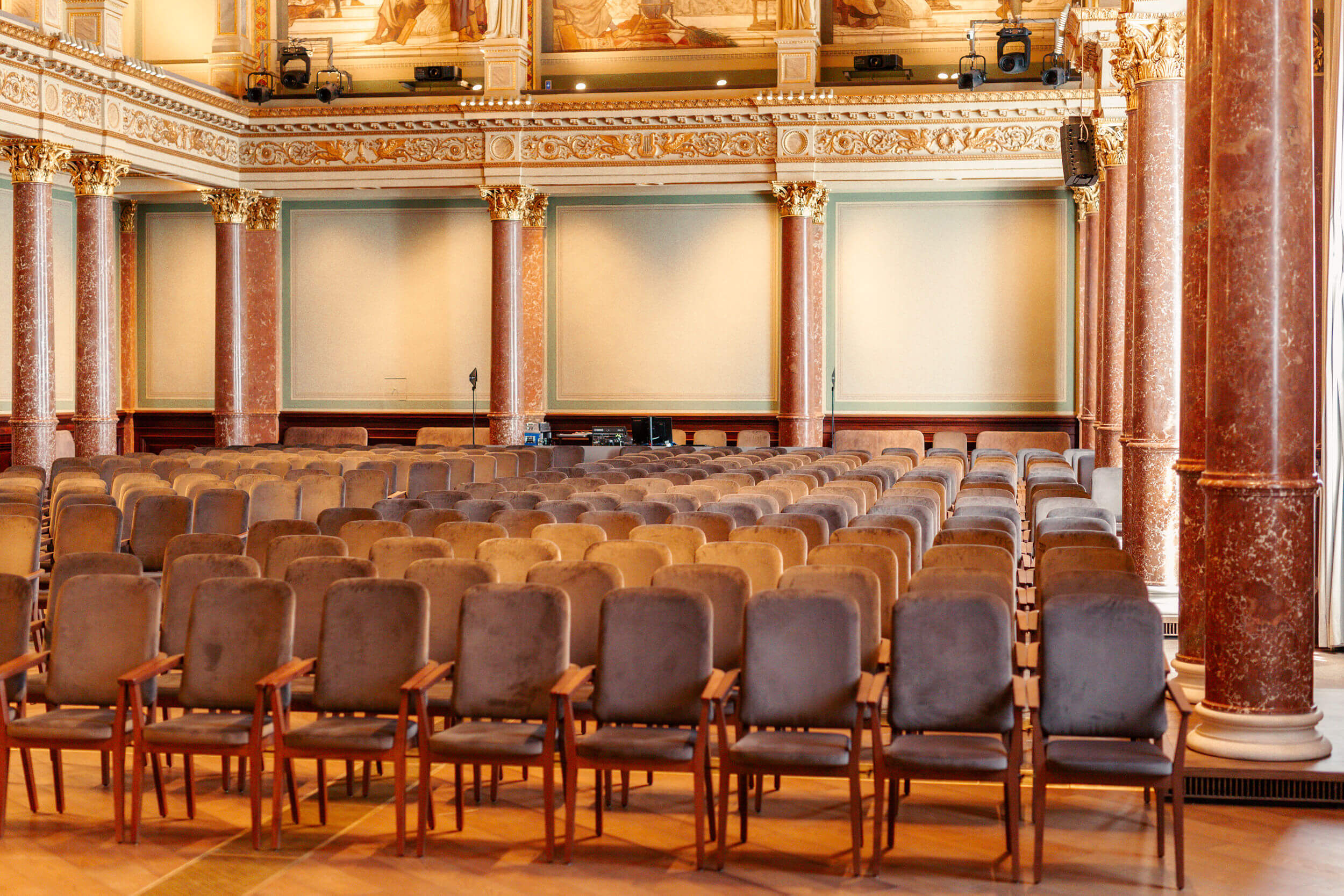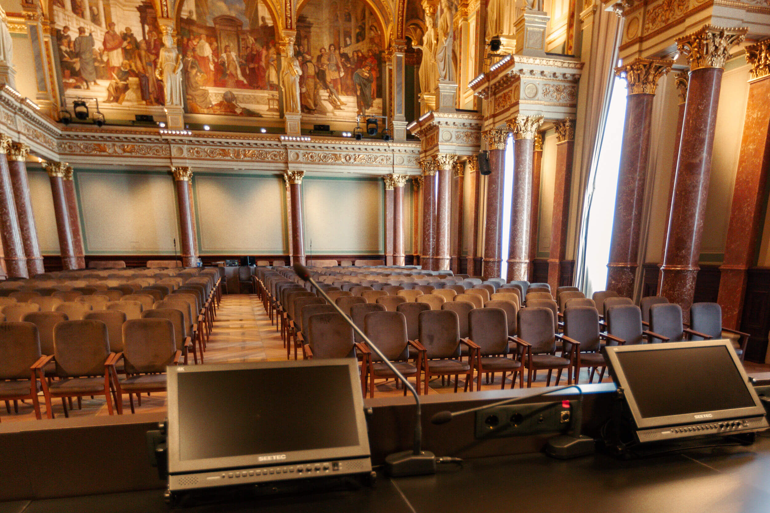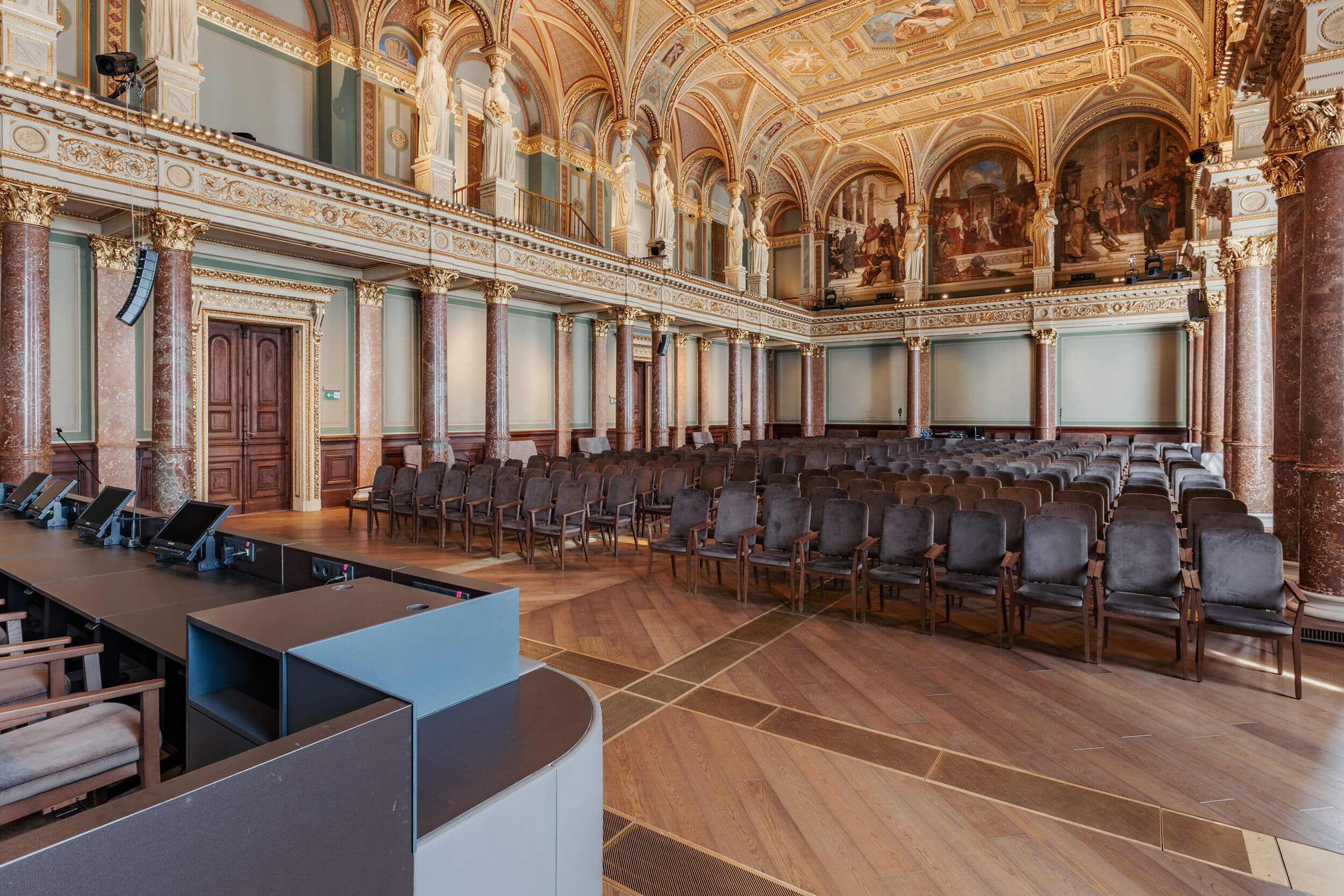Az MTA Székház Díszterem karzata korábban széksorokat fogadott, ma már, a technikai kiszolgálást biztosítja.