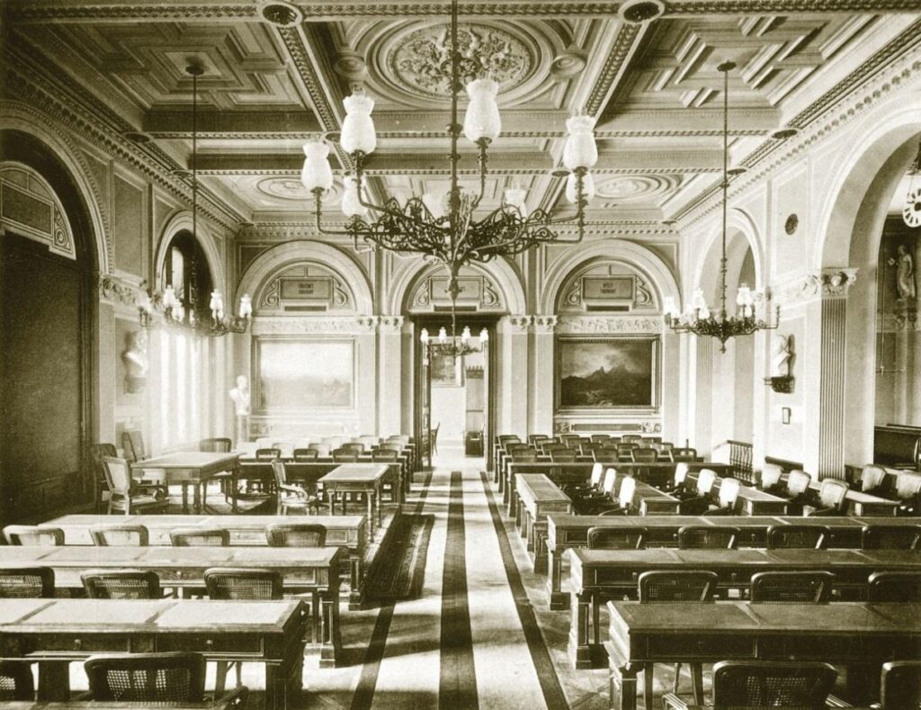 Az MTA Székház Felolvasóterem, az egykori „Heti ülésterem” adott helyet az 1865-ben megtartott első akadémiai ülésnek.