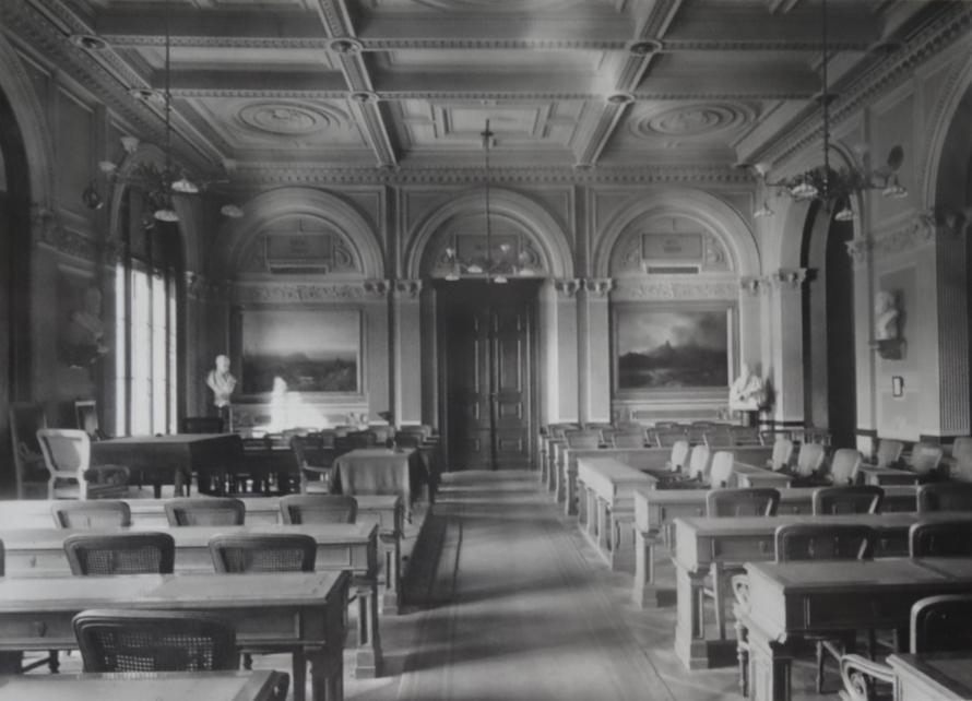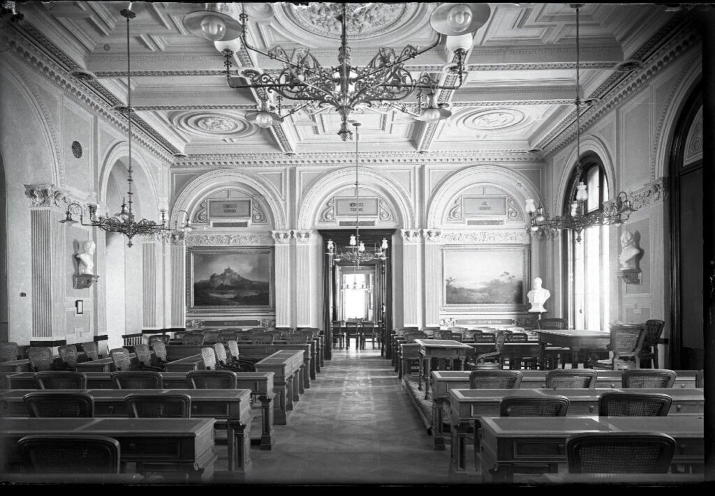 A szárny közepén, az Akadémiai testületi munkájának egyik legfontosabb tere. Eredetileg háromívű árkáddal, mintegy bővítményként kapcsolódott hozzá a közönségnek szánt keskenyebb teremrész.