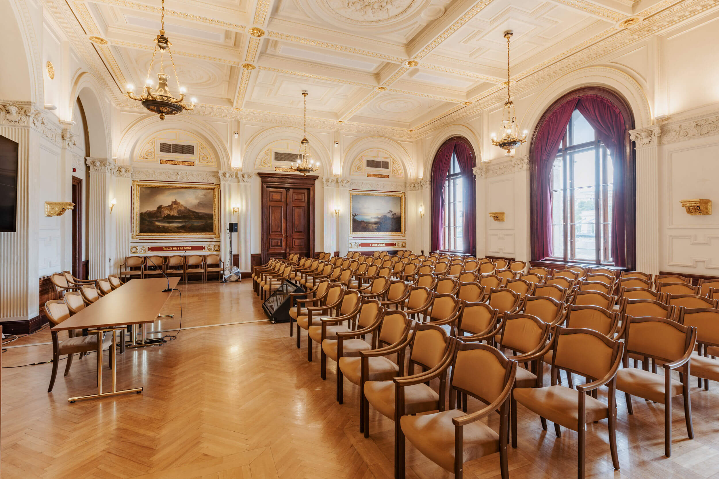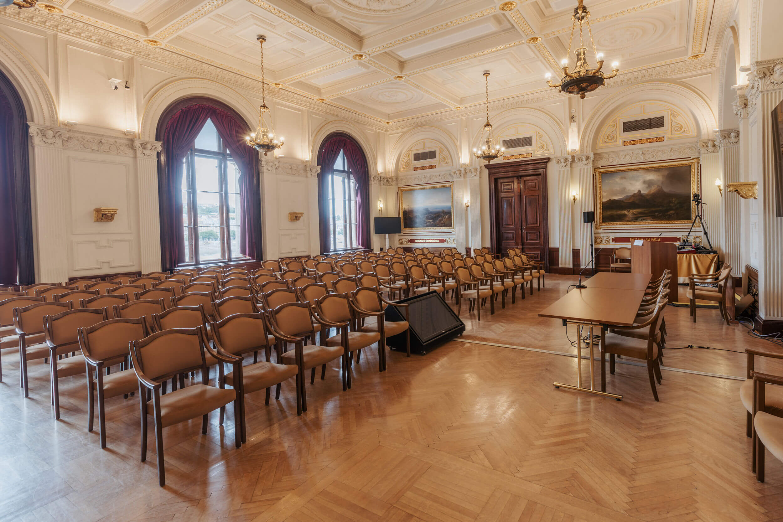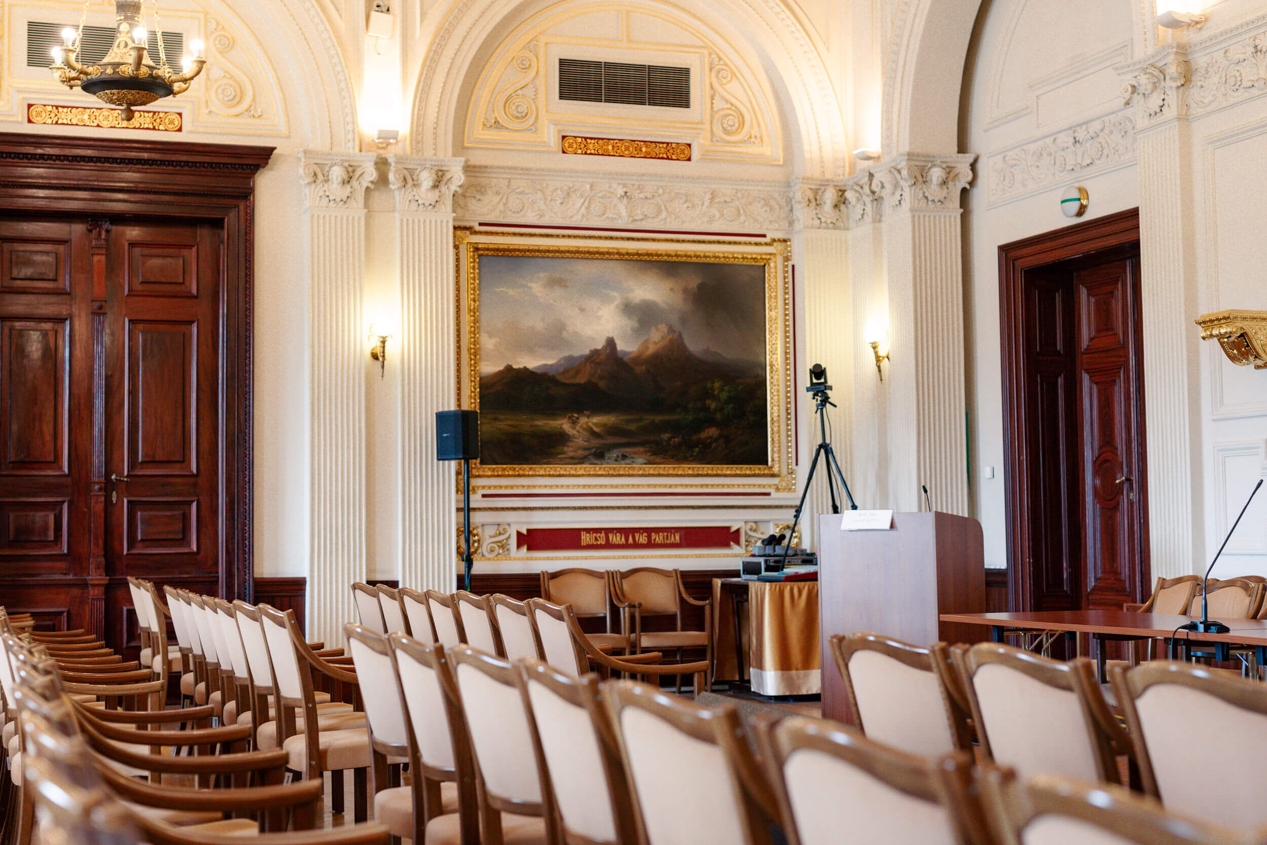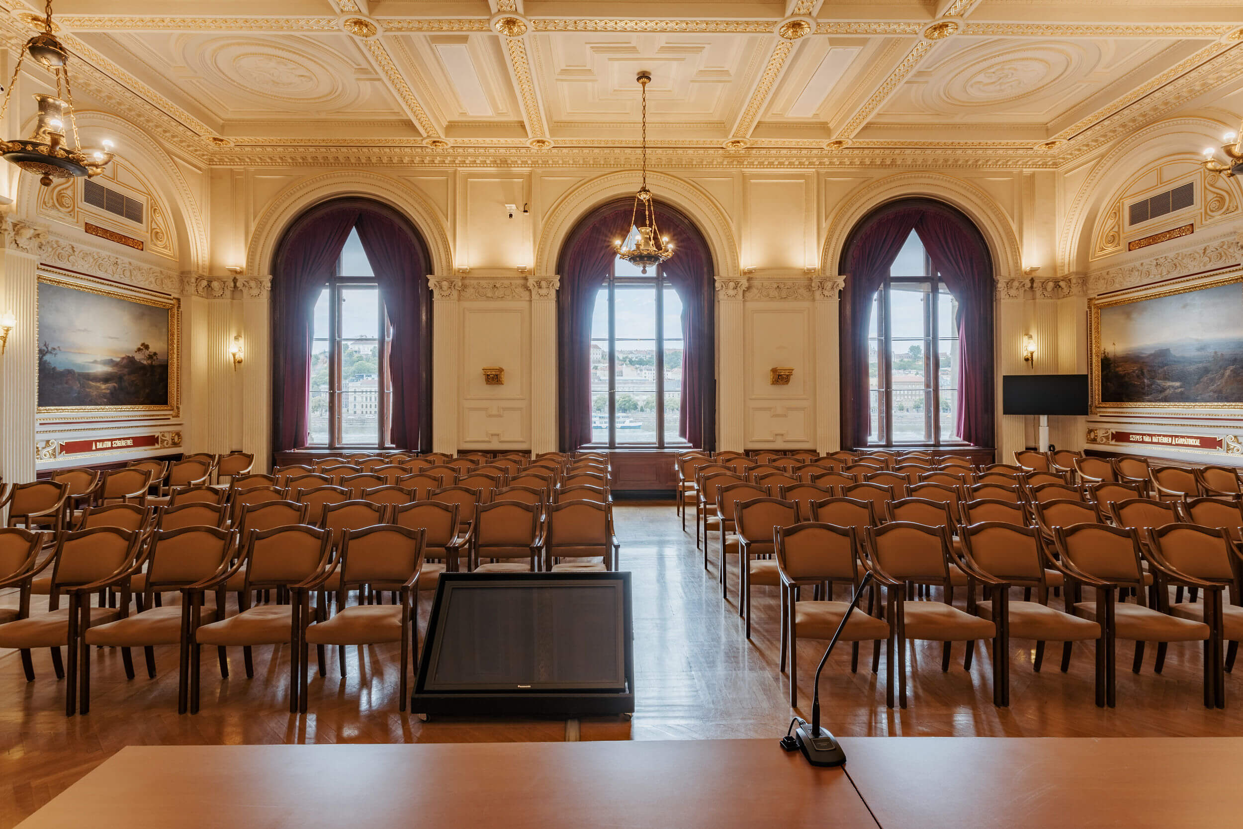 Az MTA Székház Felolvasóterem, az egykori „Heti ülésterem” adott helyet az 1865-ben megtartott első akadémiai ülésnek.