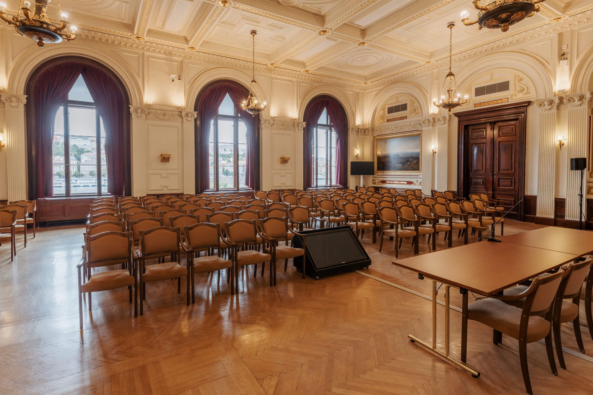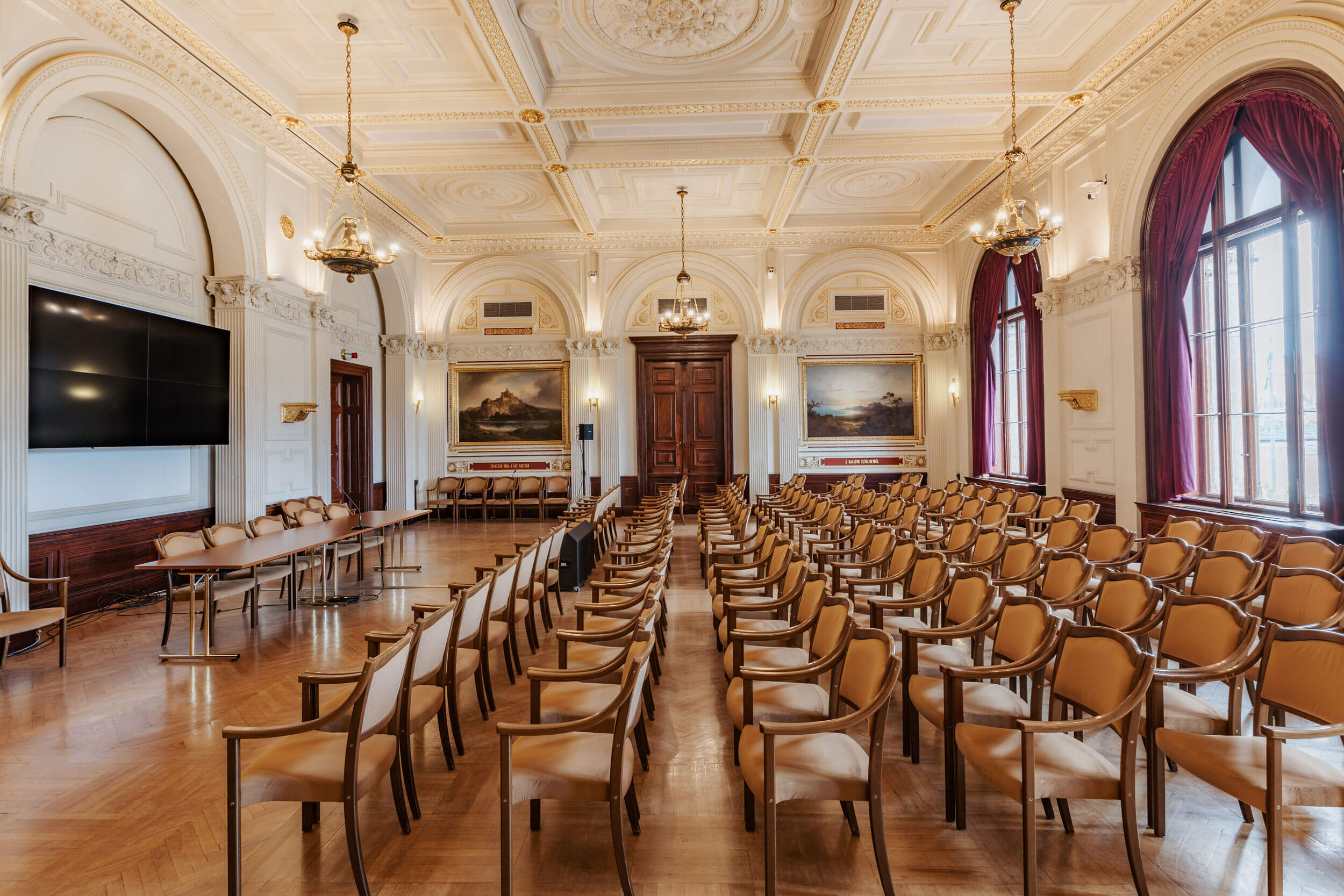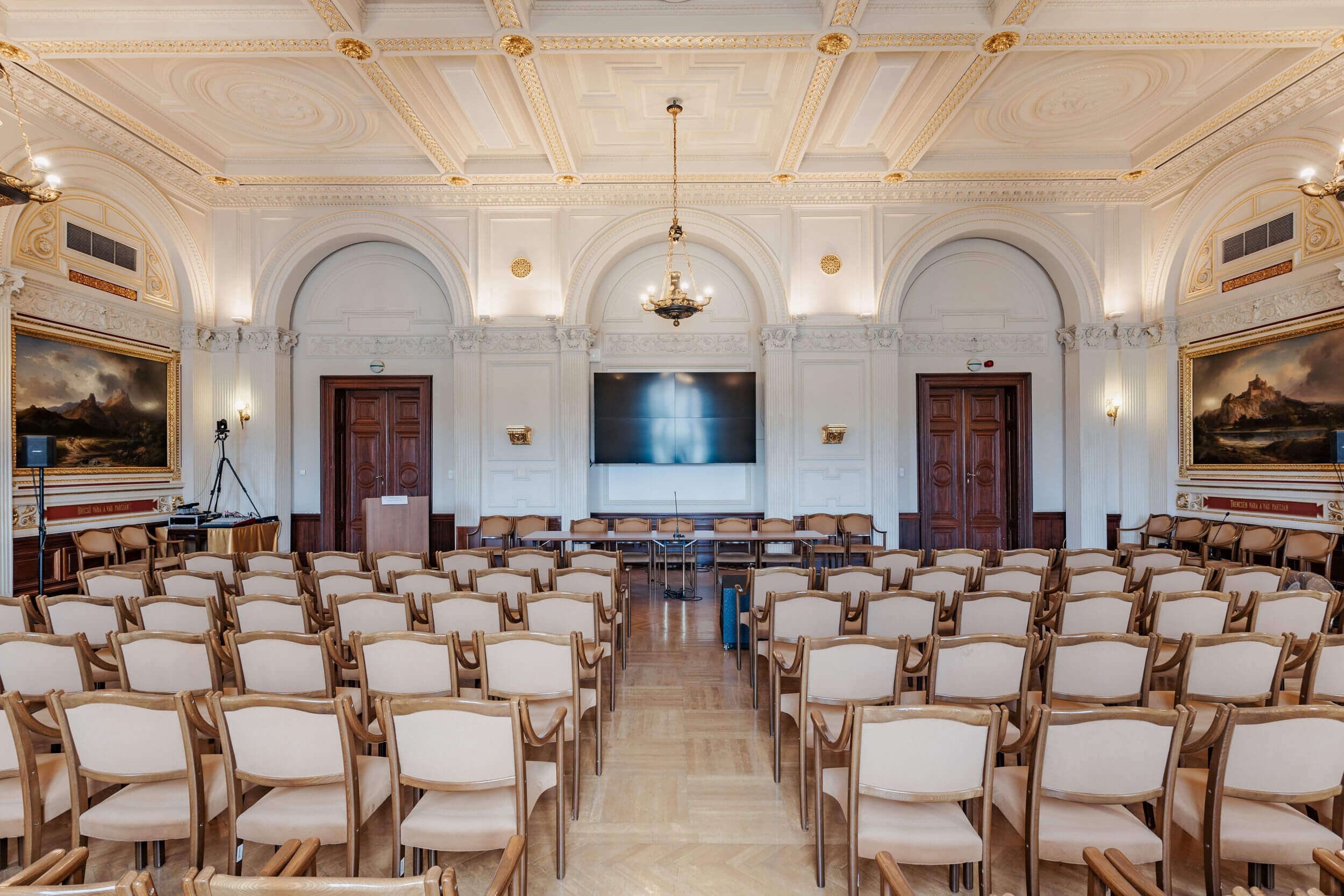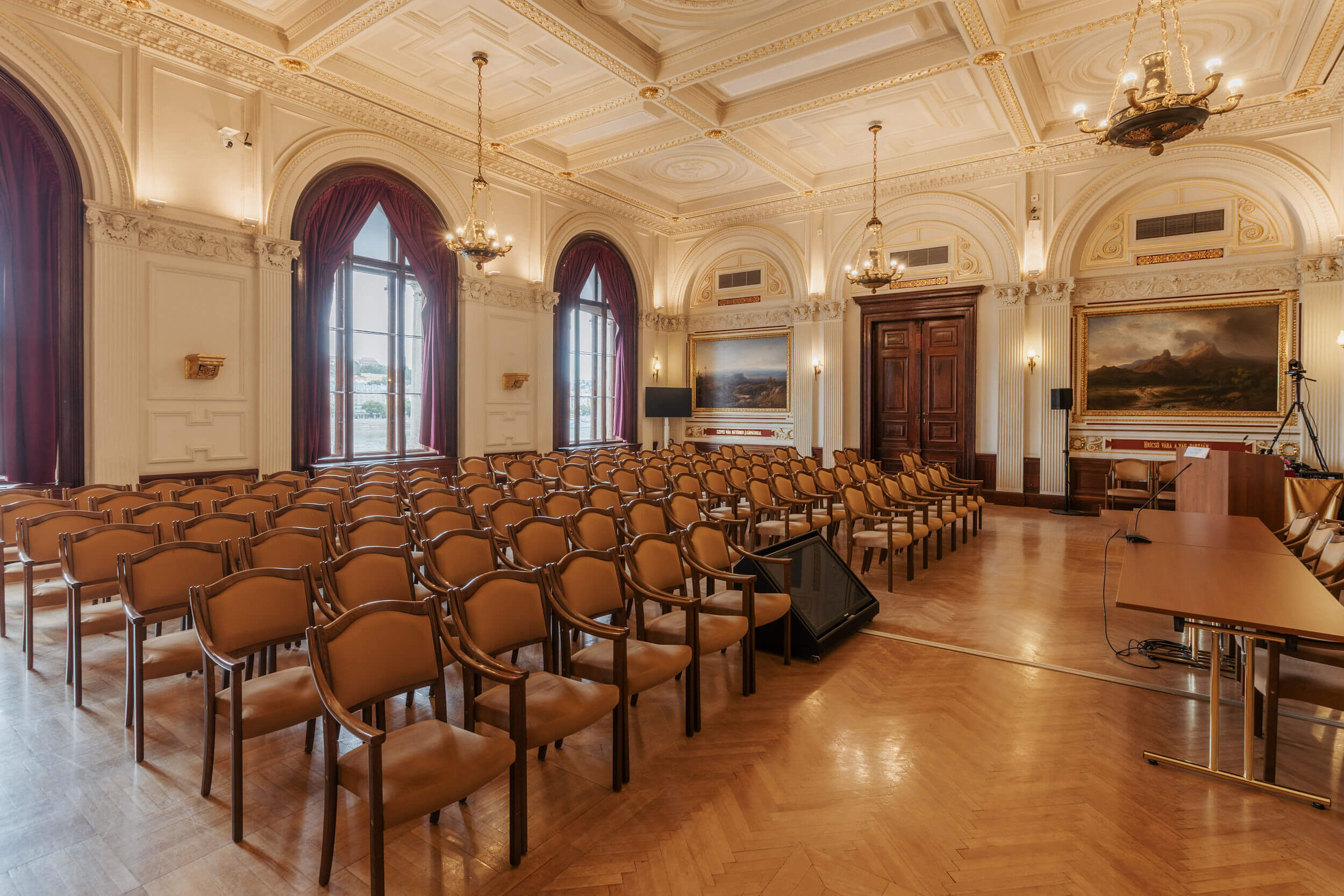 Az MTA Székház Felolvasóterem, az egykori „Heti ülésterem” adott helyet az 1865-ben megtartott első akadémiai ülésnek.