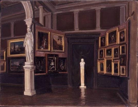 Eredetileg három tengely hosszúságú, gazdagon tagolt helyiség volt, ahol a falszakaszokat nyitott, törpeoszlopos kabinetsorok tagolták.